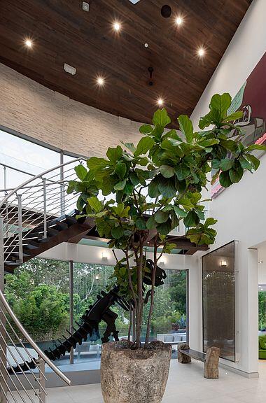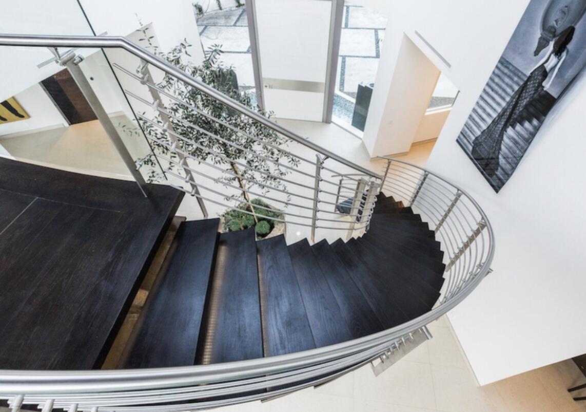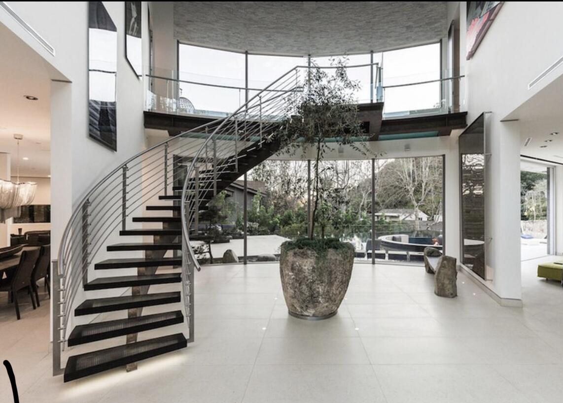 dramatic atrium complete with curved staircase