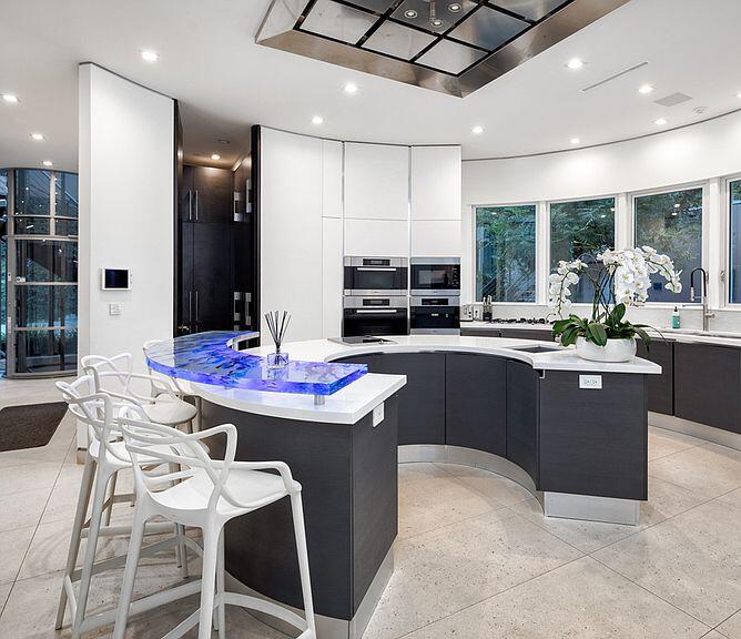 the art Miele appliances and LED lit kitchen