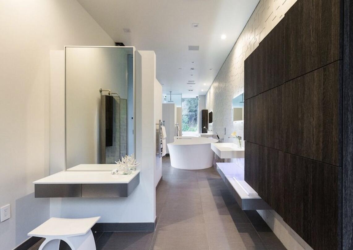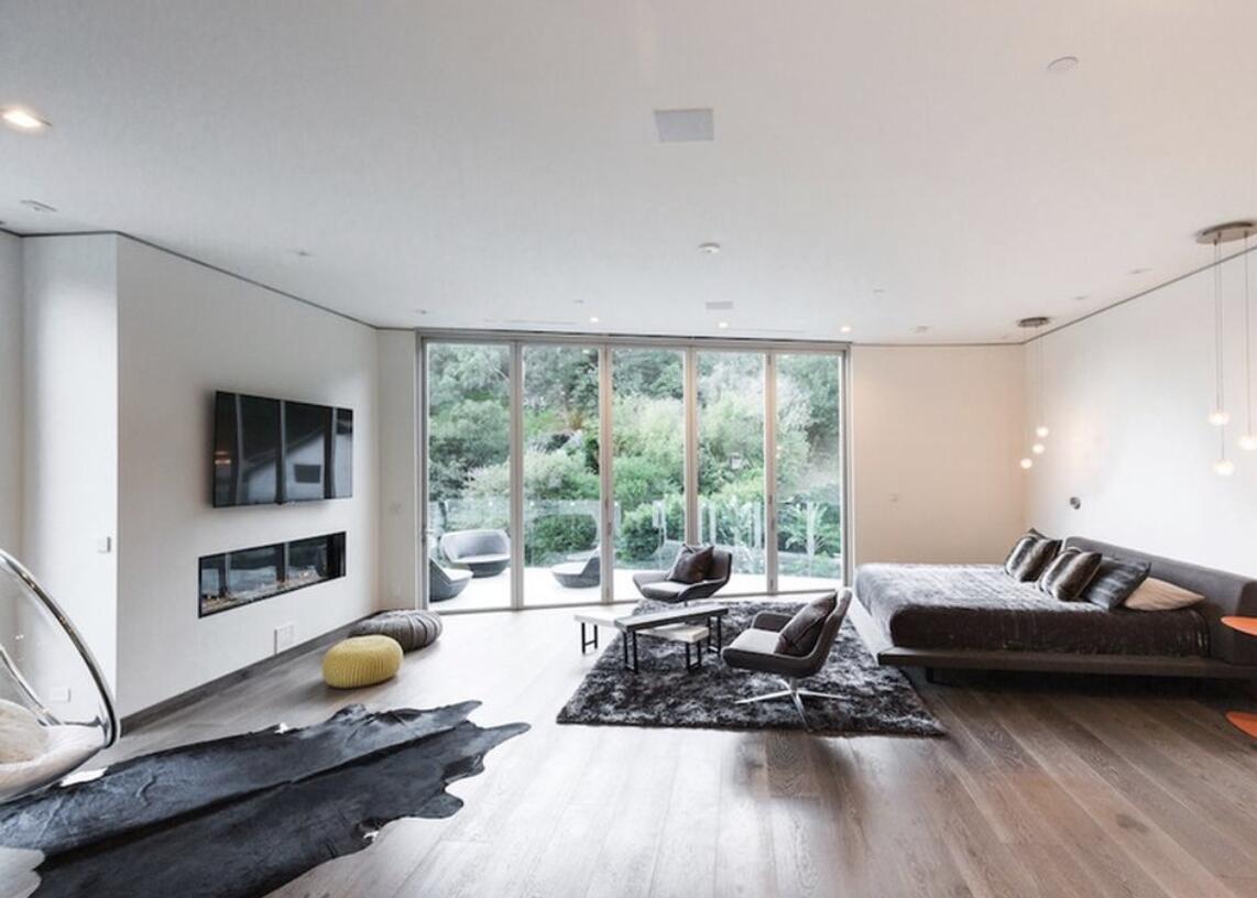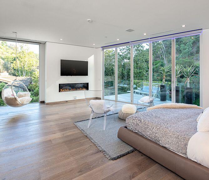 walls of glass and sumptuous spa-like bathroom.