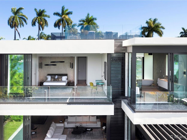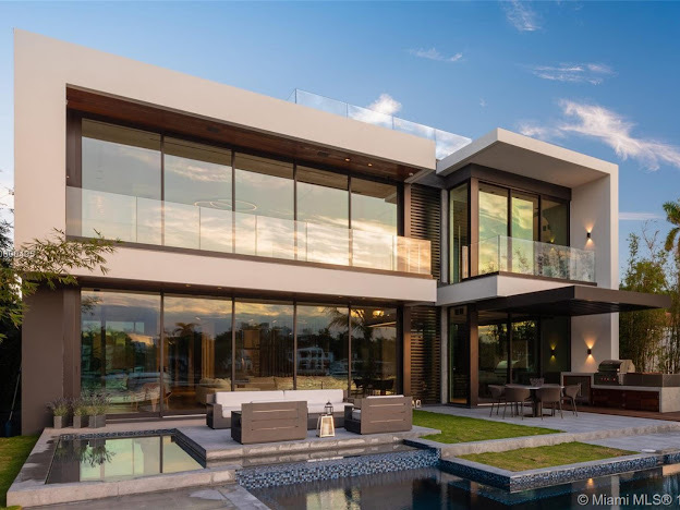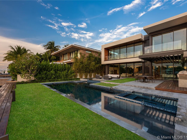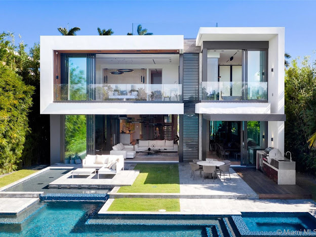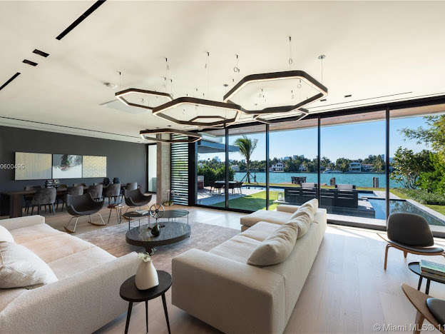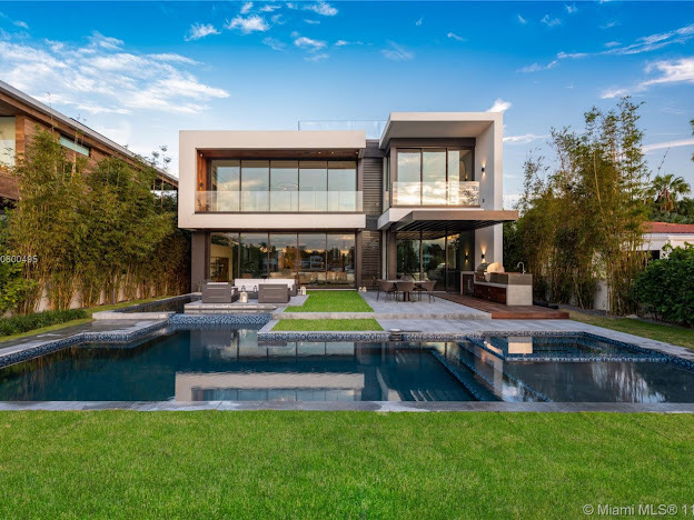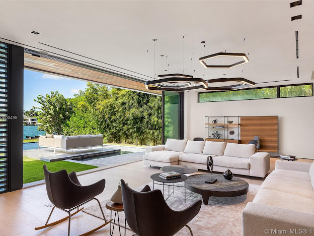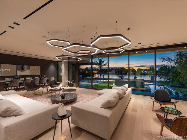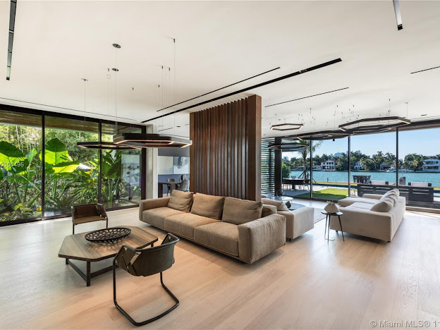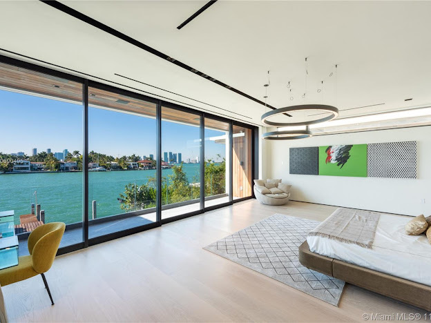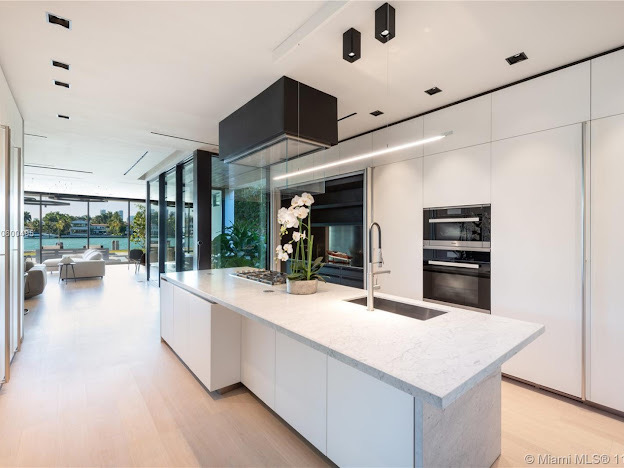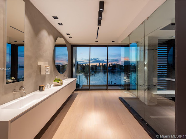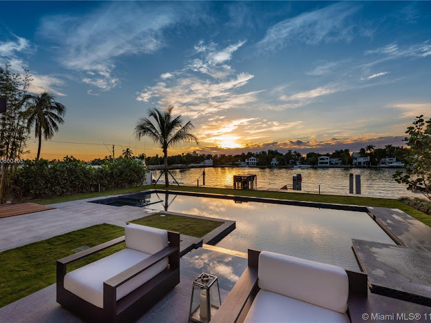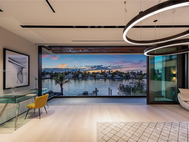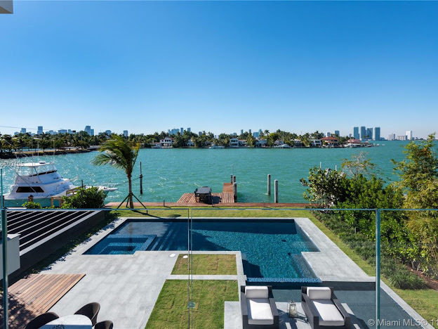 Ultra-high-end luxury waterfront on the Venetian Islands in Miami Beach facing West & offering incredible Miami Skyline & sunset views! Built in 2019, this modern masterpiece features an open concept floor-plan with a family room, glass-enclosed office/bar, dining area, Boffi kitchen, & living room with powered sliding doors. Finishes include: exquisite Listone Giordano oak floors, Savant control system, 10' ceilings, Italian frameless doors, Boffi fixtures & closets. Upstairs, stunning oversized master suite with luxe bath & large terrace. Outside, heated salt-water pool with a spa, Boffi summer kitchen, IPE deck, new dock/seawall. Amazing 620-sf rooftop deck offers jaw-dropping skyline & bay views. Automatic gate, security cameras, 3 electric car charging stations, & 2-car A/C garage.